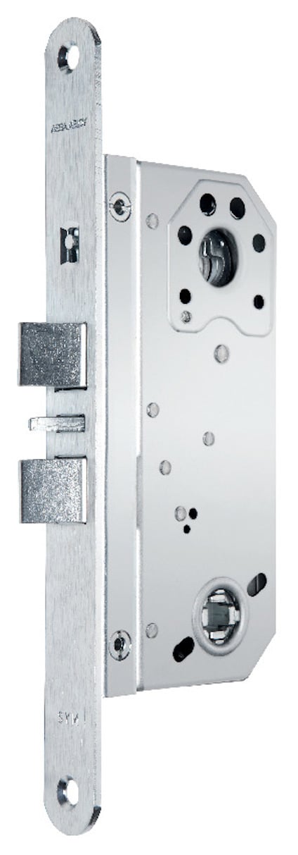 Låshus för ytter- och innerdörrar. Försett med trycke-, cylinder- och förreglingsfall. Automatisk förregling och vändbara fallar. Cylinderfallen ställs upp med uppställningsknapp. Mikro för larmanordning. Läs mer