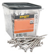 Trallskruv A2 FAST. Trallskruv med fiberskärande cutter-spets och CS-rillor under skallen. Användningsområde: Trall, staket och panel utomhus. Material: Rostfritt A2 stål, korrosivitetsklass C4. Burk. Läs mer