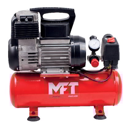 Oljefri kompressor för professionellt bruk. Kompressorn är mycket kompakt och lätt, har en låg ljudnivå och är utrustad med kombikoppling (Euro/norsk). Kompressorn är perfekt för drift av dyckert- och klammerverktyg, samt för renblåsning, etc.